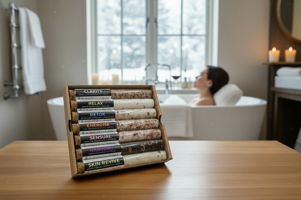Discover the "7 Days of Selfcare" bath salt gift set with seven unique fragrance combinations, each containing 40g of the finest bath salts. From sensual ylang-ylang and coconut to invigorating citrus and ginger notes, and relaxing lavender – each blend supports your well-being in a special way.