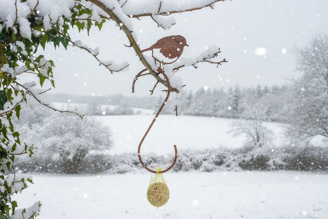 Der Haken bietet ausreichend Platz für mehrere Knödel oder größere Futterkugeln. Die einfache Aufhängung macht die Installation unkompliziert – egal, ob an Ästen, Haken oder einer Vogelfutterstation. Dank der witterungsbeständigen Metallkonstruktion ist der Meisenknödelhalter lange haltbar, selbst bei Regen, Schnee oder direkter Sonneneinstrahlung.