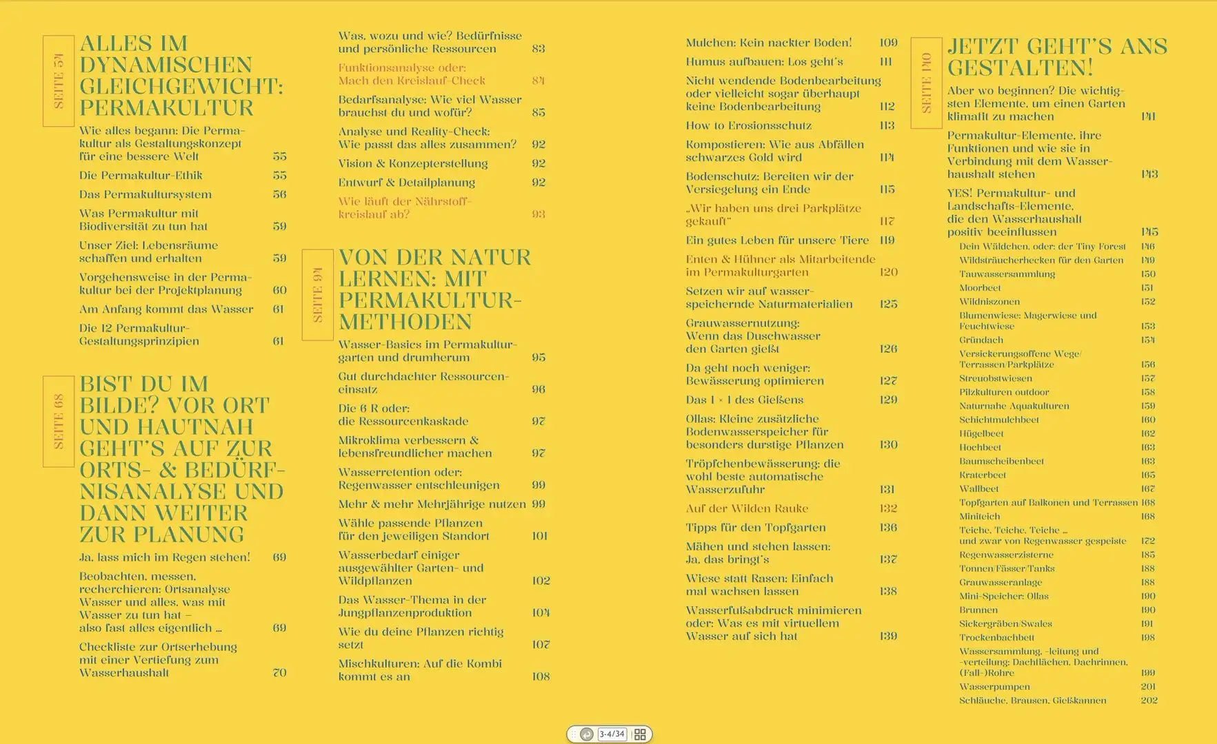• Schlüsselressource Wasser – ohne läuft gar nix: Genau deshalb ist es so wichtig, sich um das Thema Wasser zu kümmern: Wie lässt sich Wasser am besten speichern und nutzen? Was hat die Qualität des Bodens und die Gestaltung des Gartens mit dem Ganzen zu tun?