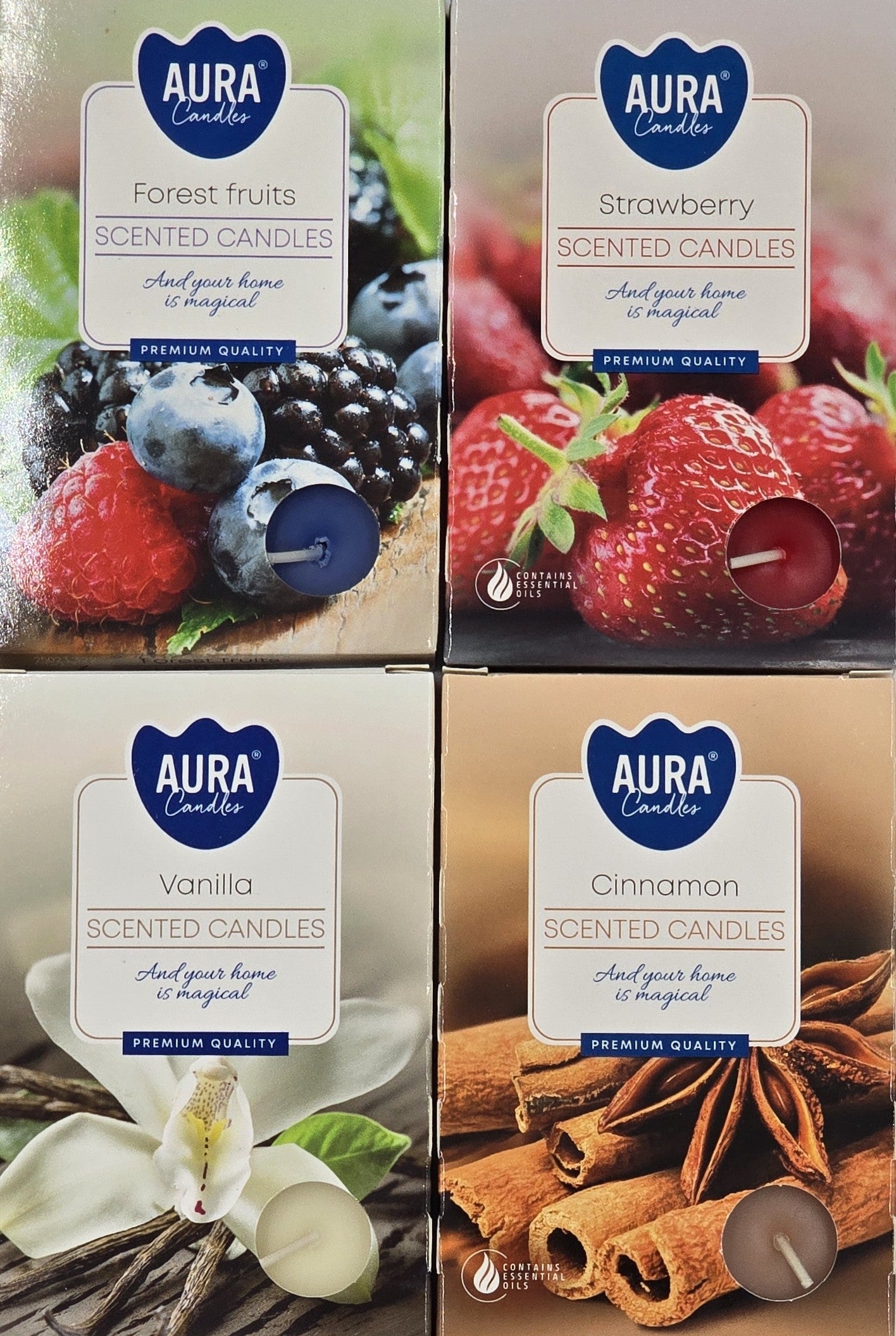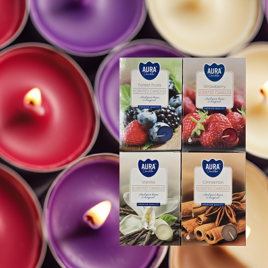 Duft-Teelichter Set verschiedene Düfte 4x6 Stück Erdbeer Vanille Zimt Waldbeere TL4