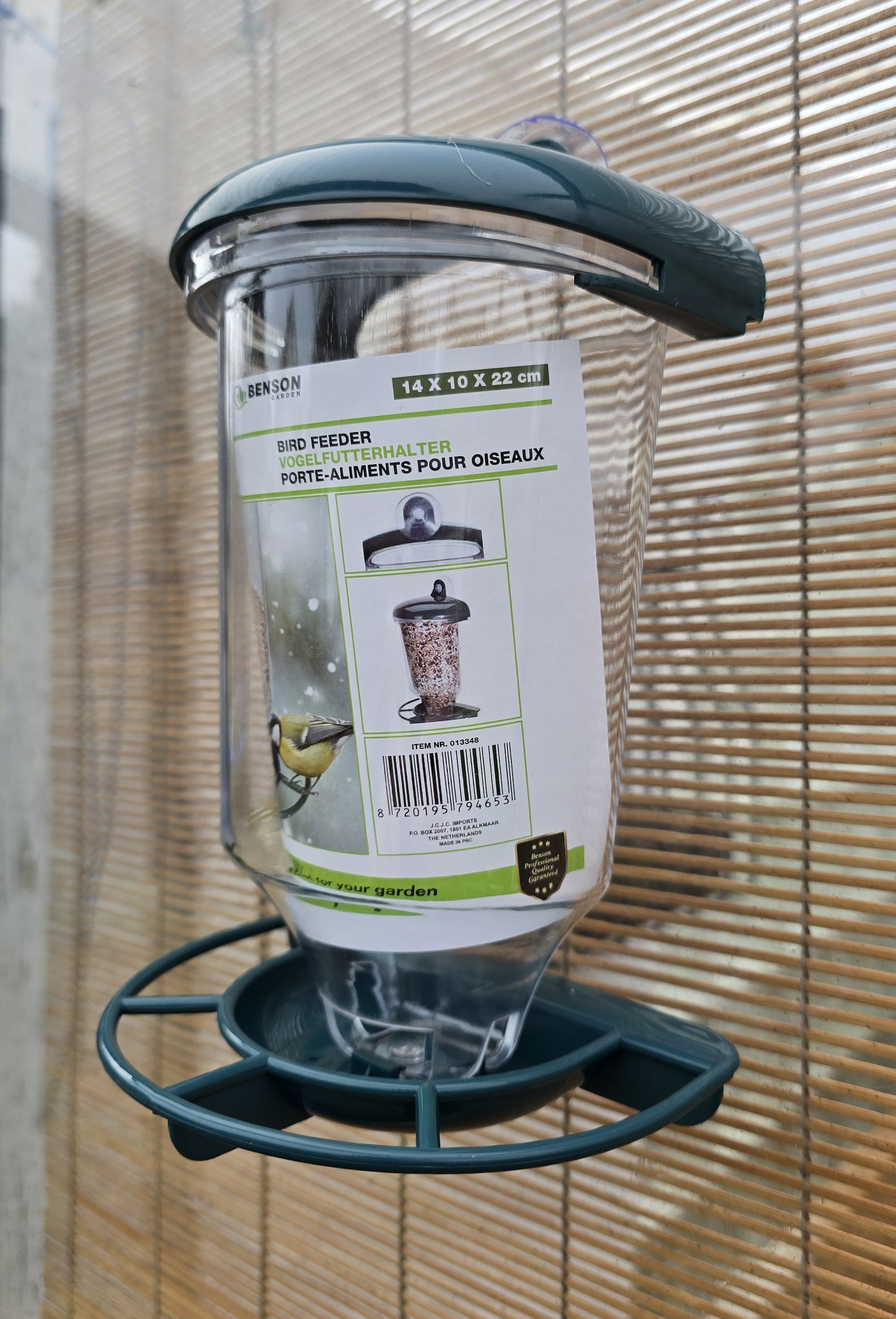Vogelfutterstation mit Saugnapf – 14 x 10,5 x 22,5 cm | Transparenter Vogelfutterspender für das Fenster