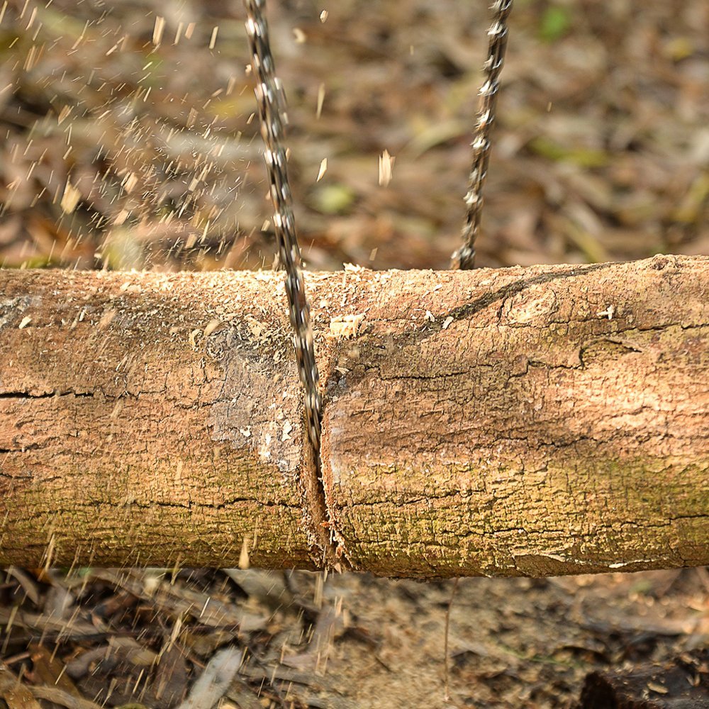 Mit 11 scharfen Zähnen und dem kräftigen Sägeseil schneiden Sie mühelos durch Äste und kleine Stämme. Um ein verkanten zu verhindern sind die Zähne gegenläufig angeordnet. Späne werden somit besser ausgeworfen.