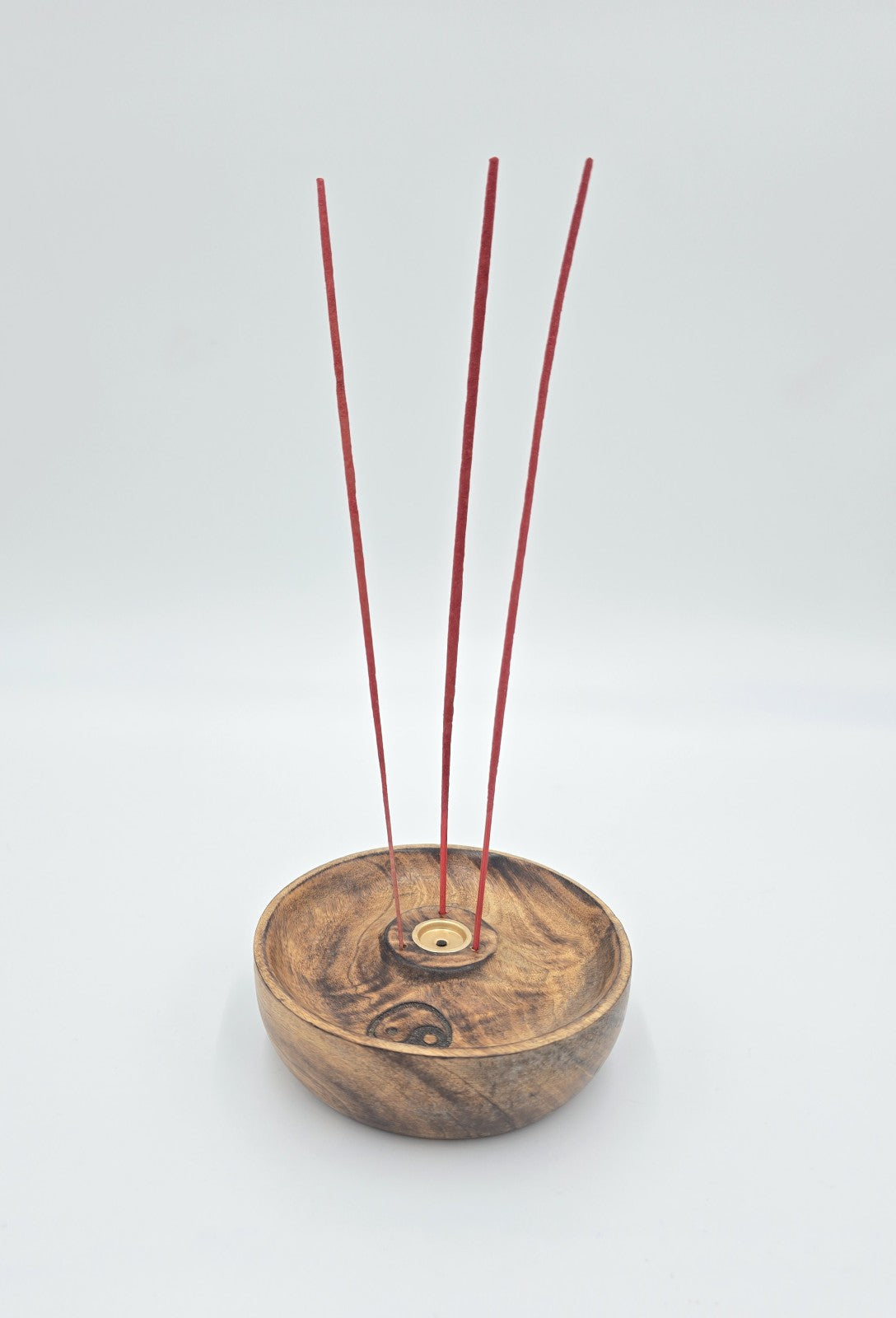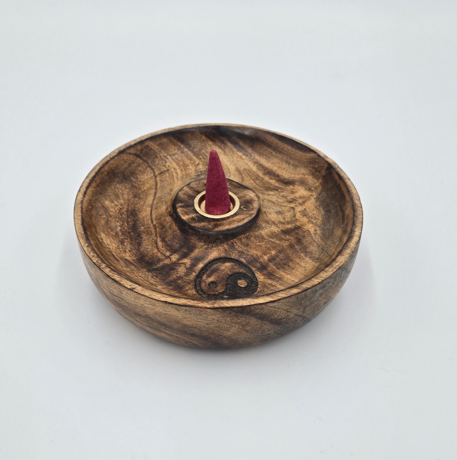 Räucherteller Räucherstäbchenhalter für Kegel und Stäbchen 12,5 cm Mangoholz Ying Yang