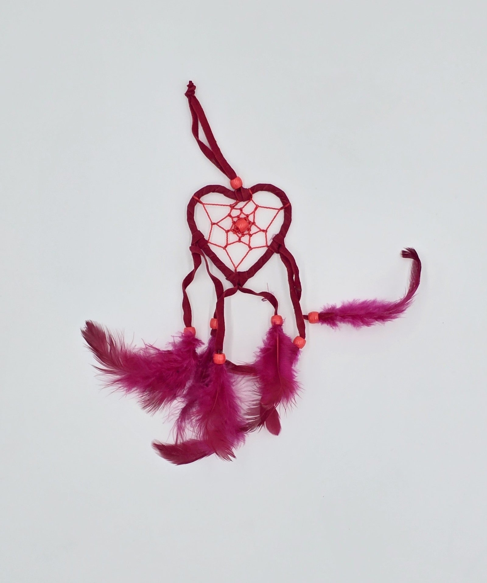 Traumfänger Bali 20x7x0,5 cm Dreamcatcher Herz rot weiß schwarz Rückspiegelanhänger