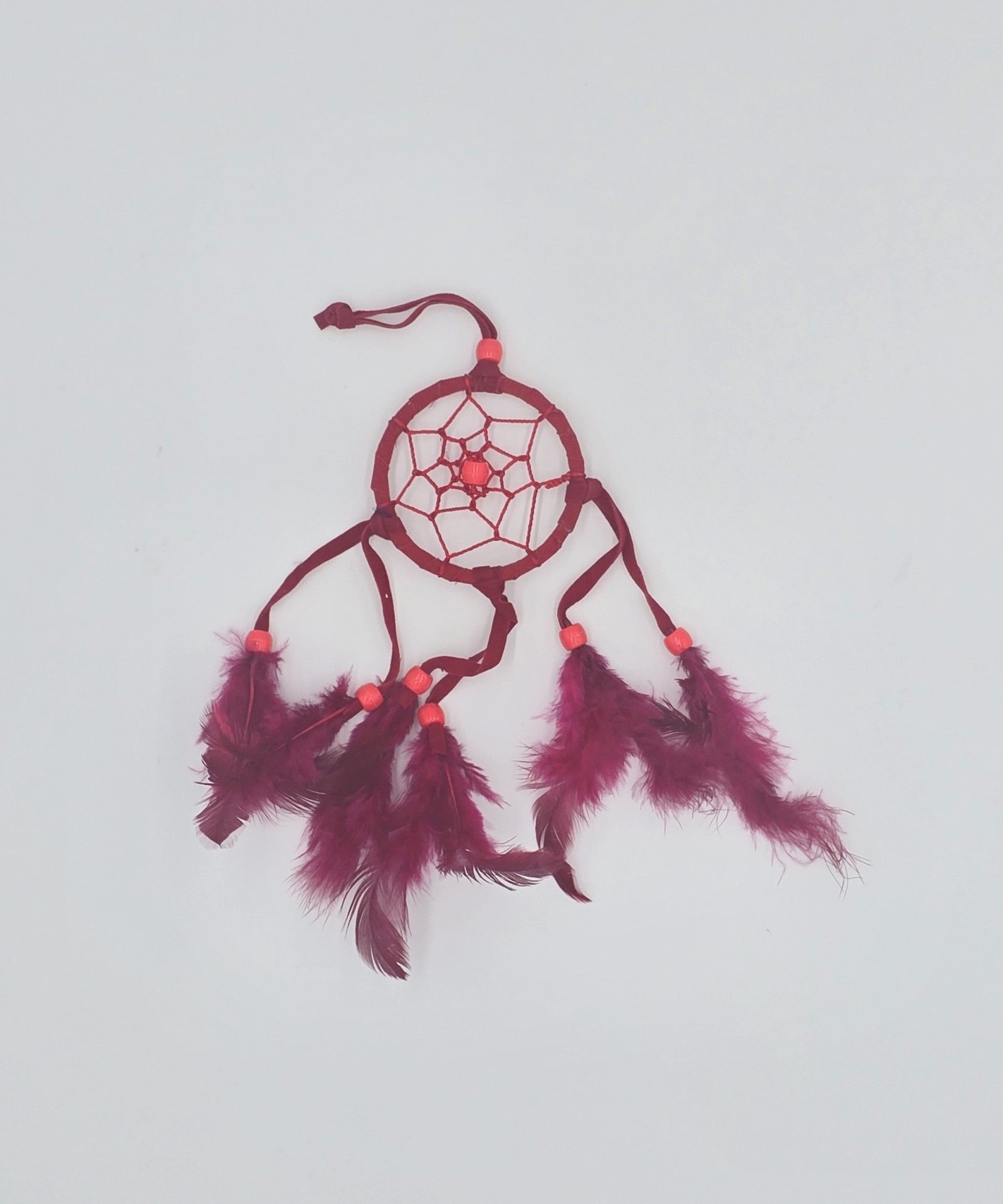 Traumfänger Bali 20x6x0,5 cm Dreamcatcher Rund rot weiß schwarz klein Rückspiegelanhänger