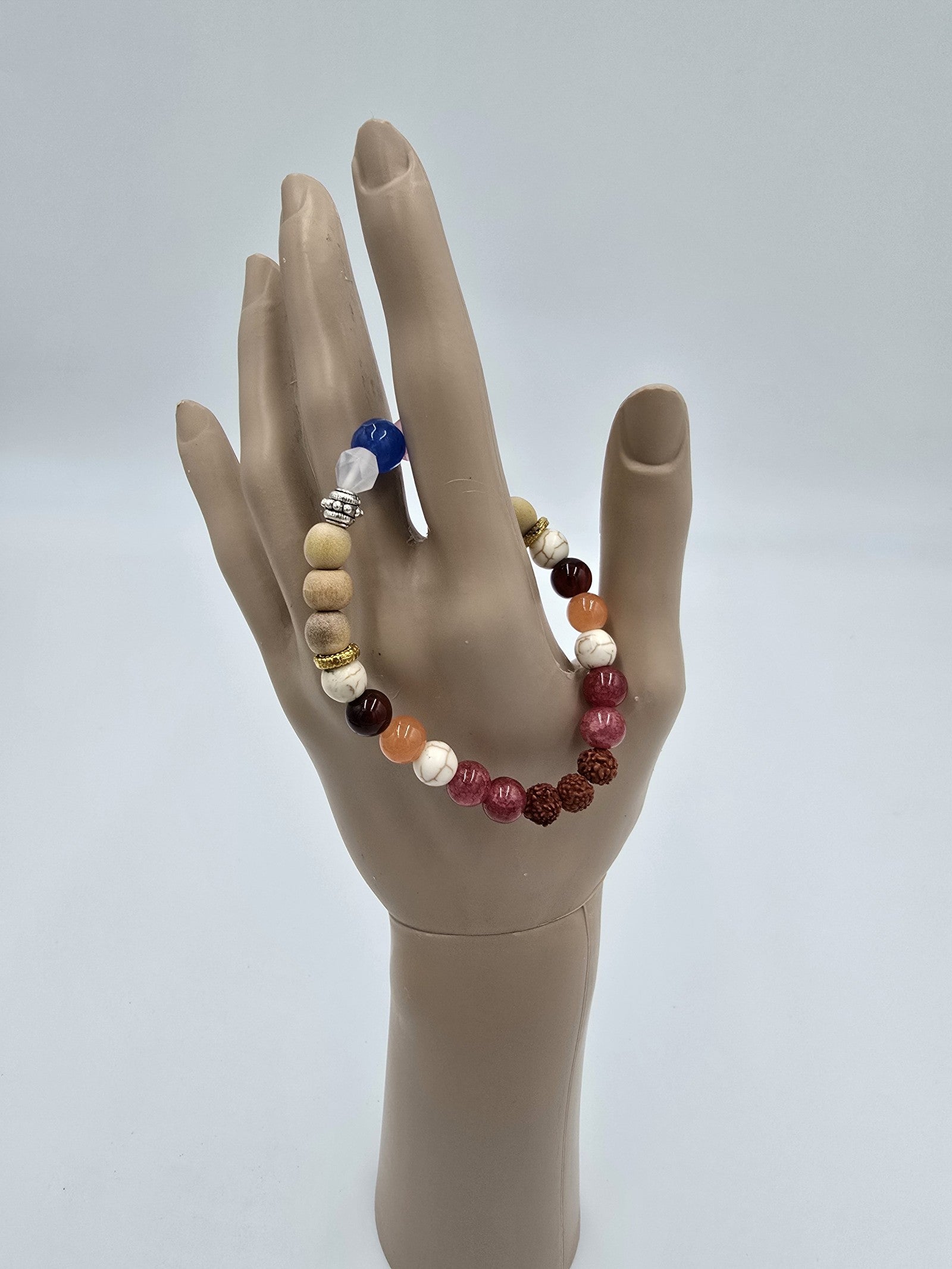 Inspiriert vom Gleichgewicht zwischen Gott, Mensch und Natur schenkt dieses Armband positive Energie und Glück. Ideal, um Balance und Wohlbefinden spielerisch zu unterstützen.