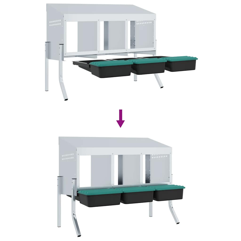 Legenest Hühner-Nistkasten 3 Fächer mit Beinen Verzinkter Stahl und PP Abrollnest